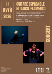 Samedi 11 avril 2026 Guitare espagnole et danse flamenco Samedi 11 avril - Entrée libre Concert - 18h - Auditorium Edgard Varèse